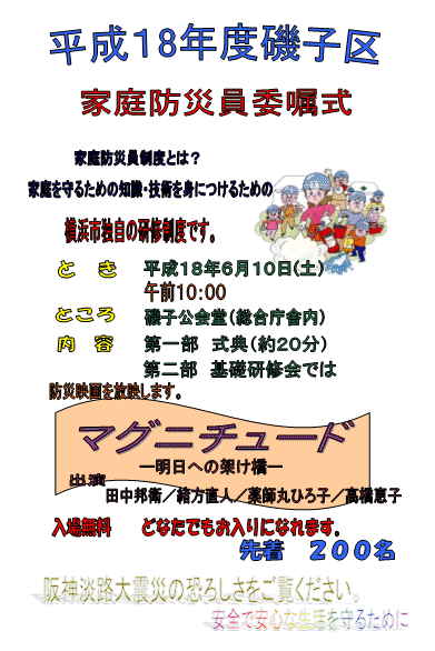 が開かれます。この式典は入場無料、先着200名でどなたでも参加できるそうです。式上、阪神・淡路大震災をテーマにした映画『
