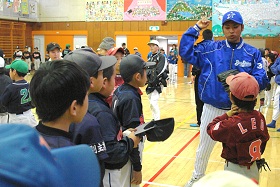 ところで、写真が小さいのでわかりづらいでしょうか、左端は1998年、ベイスターズがリーグ制覇&日本一を達成したシーズンにセットアッパーとして大活躍した、ヒゲ魔神こと五十嵐英樹さんです。この日は、選手達のサポート役として野球教室に参加していました。